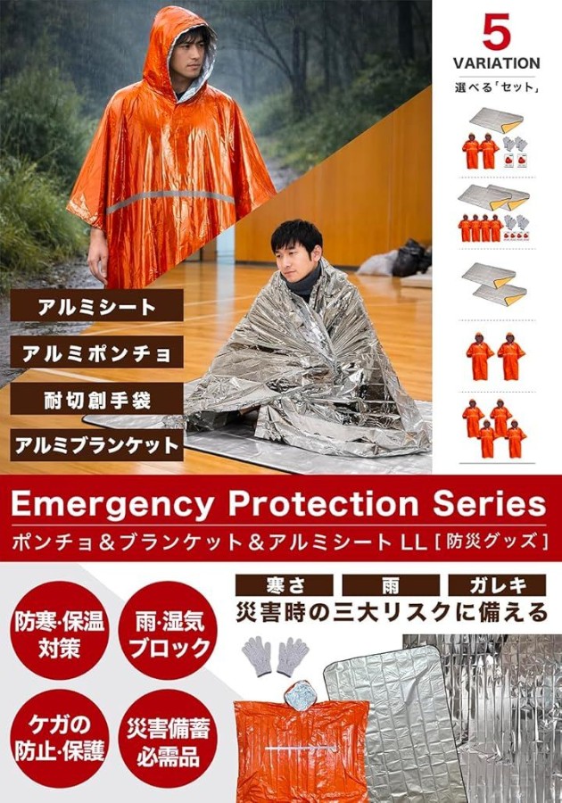 「登山・ハイキングの遭難・負傷対策」 山での急な天候変化や怪我で動けなくなった際、この「反射板付きポンチョ」が役立ちます。