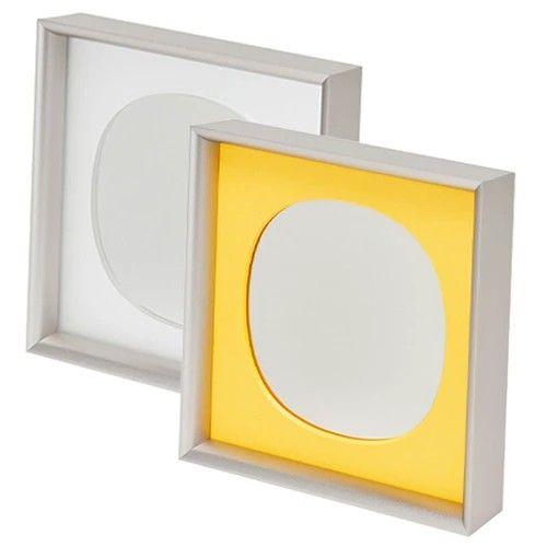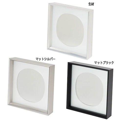壁掛け・立て掛け、奥行きがある為、卓上に自立させる事も可能です。奥行の幅が広い鏡となっている為、立体感があります。額縁の中に「マット」と呼ばれる穴の開いたアクリルが入っており柔らかい印象のデザインとなっています。