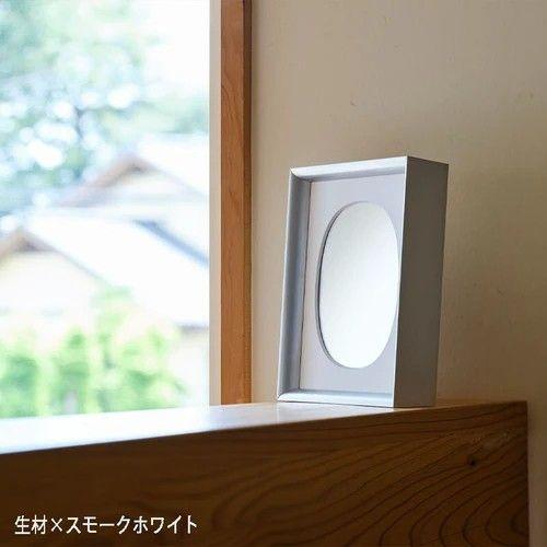 壁掛け・立て掛け、奥行きがある為、卓上に自立させる事も可能です。奥行の幅が広い鏡となっている為、立体感があります。額縁の中に「マット」と呼ばれる穴の開いたアクリルが入っており柔らかい印象のデザインとなっています。