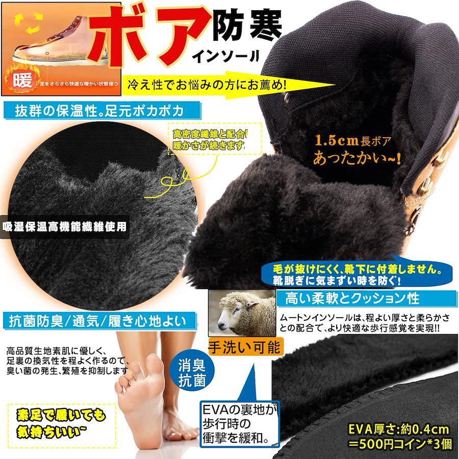 クロージャータイプ レースアップ■アウトドア靴専用頑丈な丸型靴紐2足が入り(画像色1足+黒色丸紐1足) 【雪国に対応◎防水・透湿・耐水圧機能を融合した最強ブーツ!】★5cmの6時間防水仕様。安心な透湿防水レザーを使ったの上、アッパーにも防水フィルムライニング素材と防水テープで補強されており、水の染み込むことをガッチリ防ぐことができ、水分の多い雪には強く、積雪や降雪時靴内の爽やかも保ちできます。(※完全防水ではありません、使う状況により、防水効果も違うので、ご注意!)【冷え性防寒対策◎1.5cm長極厚いボア仕様、防寒恒温効果最高】★Alvisto専門店特有、市場より2倍以上長く、360度恒温機能を持つボアを採用した。爪先から踝までも覆われて、寒い空気をしっかりシャットアウトしてくれる。寒げが嫌な方の関節も保護できます!??さらに、吸湿保温高機能ムートンインソール付きで、保温効果アップ!ご家庭でも簡単に手洗い可能、いつでも清潔・衛生的です。【足首保護◎立体型インナーフォーム装備】足首周りには厚めの3D型クッションパット付き。??高弾力クッション中綿素材だから、側面の衝撃から足を保護します。??硬めの本革素材で固定されたカバーは、足首周りをホールドし、歩行時のズレや擦り傷などを防ぎ、バイク用などにも全面的に安全性を維持できます。?足首周りは速乾性に優れる立体メッシュを採用した。スッキリとした外観性がかっこよく見えるの他、雨の日に、毛が濡れたことを防ぎ、快適な履き心地も実現した。【転倒防止◎耐摩耗性、耐滑性の良いALLゴム底仕様】名ブランドと同じ使われたトレッキングアウトソールは、ギアに滑り止める設計なので、冬道の上でも存分に走れる。 雨日・雪日、ウインタースポーツ等にも大活躍できます。??低反発素材だから、地面からの衝撃を吸収できるので、スノーブーツに不慣れな方でも柔らかく歩ける、快適な歩行感覚を実現!??足の動きに合わせた屈曲溝をソールに設けて、様々な動きに対応します。【つま先保護◎甲高+幅広さんには最適した3E&幅広設計】つま先保護できるがっちりとしたアッパーデザインが、ウォーキング、旅行、トレッキングなど様々なアウトドア活動には相応しい。幅広でゆったりめ3Eデザイン