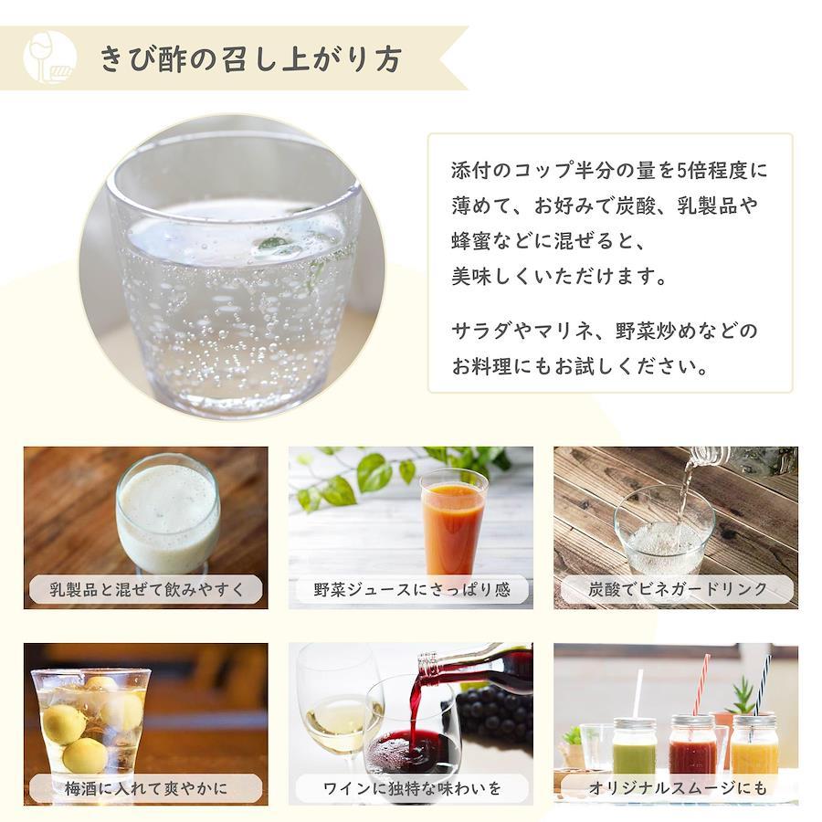 添付のコップ半分の量を5倍程度に薄め、お好みで黒糖シロップや蜂蜜などで味付けすると美味しくいただけます。お料理にもお試しください。