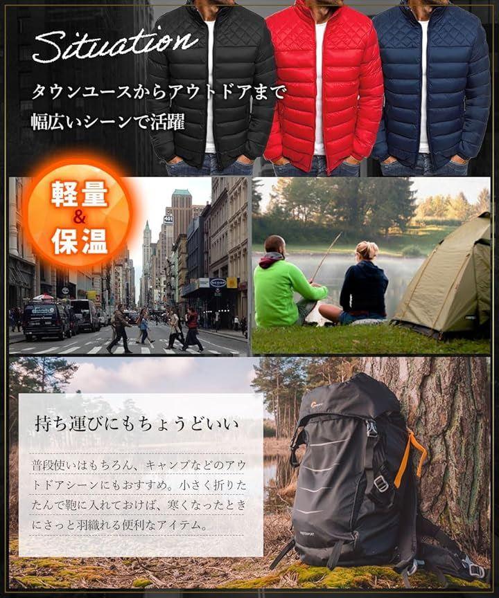 「本物のダウンのような軽さ & 暖かさ」滑りの良いポリエステル生地に中綿を詰め込んで抜群の保温性を実現。