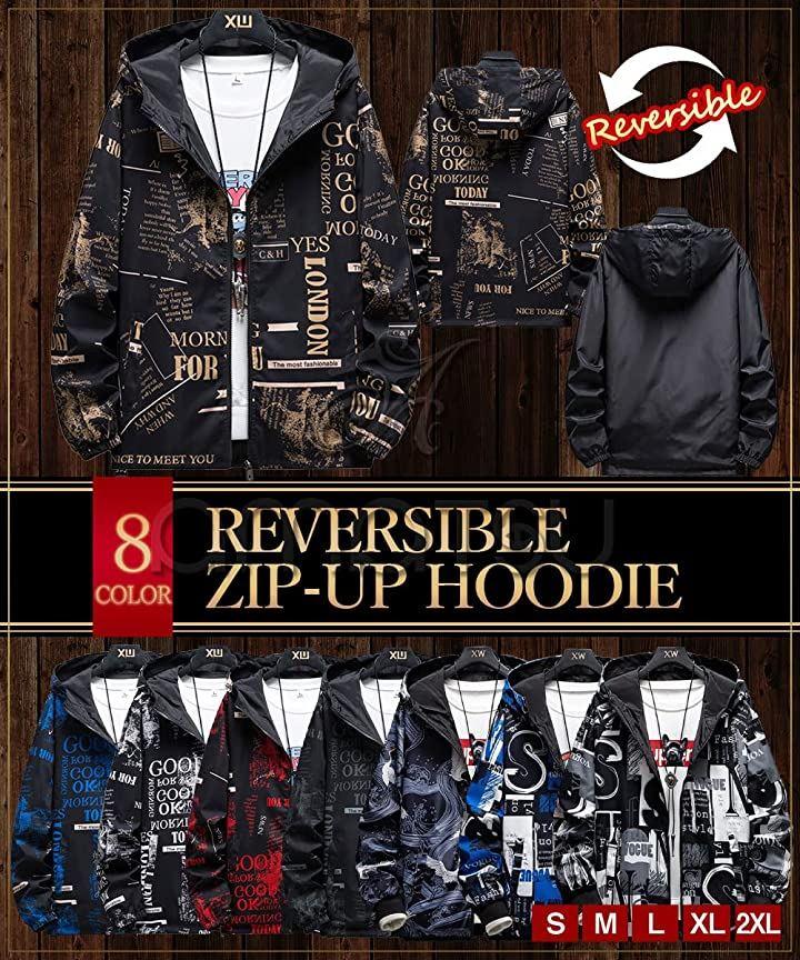 Amatsu reversible zip-up hoodie, fashionable, casual, men's