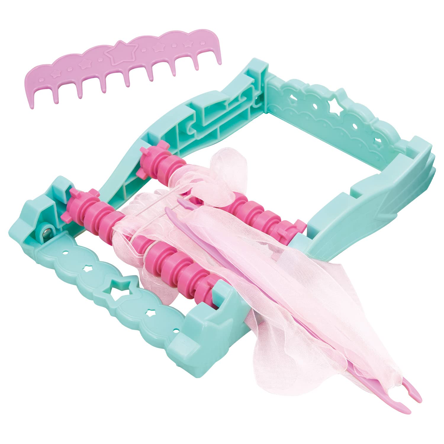 (C)BANDAI[セット内容] ・本体・・・1個 ・バー・・・2本 ・シャトル・・・1本 ・コーム・・・1個 ・ボンボン用パーツ・・・1個 ・仕上げ針/とじ針・・・各1本 ・オーガンジーリボン・・・2色×各1束 ・モールヤーン・・・2色×各1束 ・毛糸・・・1束 ・チャーム・・・4個 ・チャーム用シール・・・1枚 ・星ビーズ・・・3色×各2個 ・フェルトシール・・・2色×各1枚 ・平ゴム・・・8本 ・ヘアゴム・・・3色×各3本 ・タコ糸・・・1束 ・取扱説明書・・・1枚 いろいろな素材で簡単にあみものが楽しめるメイキングトイ「アメールアメール」が登場! 毛糸はもちろん、毛糸以外の素材を使ってあみものが楽しめます。 セット内容のオーガンジーリボンを使って、本体にヘアゴムをセットしリボンをヘアゴムに編んでいけばふんわりシュシュの完成! セット内容だけでシュシュ・ヘアゴム・くまバッグが作れます。 市販の素材を使えば、更にオールシーズンいろいろなあみものを作って遊べます。 (本商品に付属するもの以外すべて別売りです。)