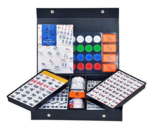 本体サイズ:幅21×奥行32×高さ5cm 本体重量:3.4kg 牌サイズ(1枚):21×28×16.5mm 牌重量(1枚):16g セット内容:麻雀牌/144枚、点棒/97枚、サイコロ/4個、透明カラーサイコロ/2個、丸チップ/20枚、焼き鳥マーク/4枚、東南マーク/1枚、ルールブック(日本健康麻将協会監修)/1冊 カラー:牌/イエロー、カバン/ブラック、牌皿・点皿/ブラック、点棒・サイコロ/白 日本健康麻将協会推奨製品 牌・東南マーク・点棒(97本):ユリア樹脂、サイコロ(4個)・透明カラーサイコロ(2個):アクリル樹脂、焼き鳥マーク・ポーカーチップ:ポリスチレン樹脂、牌皿・点棒ケース:ABS樹脂、カバン:PVC