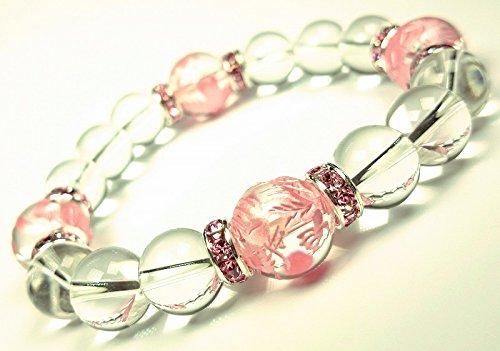 ピンク彫り四神獣水晶12mm × 4玉 水晶10mm × 12玉 ピンクロンデル