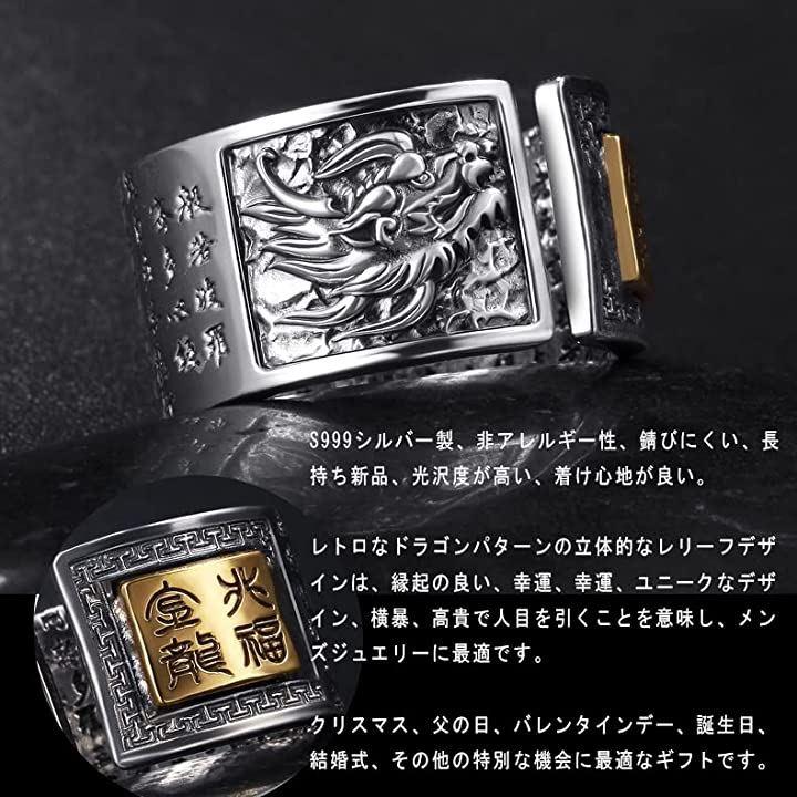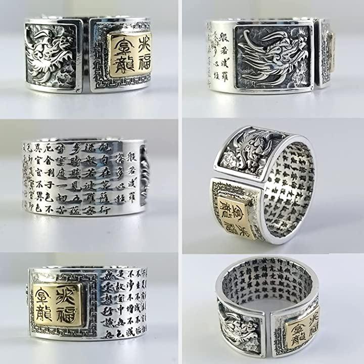 Amulet Ring Adjustable Dragon Heart Sutra 999 Silver Accessory Unisex Width 1.2cm