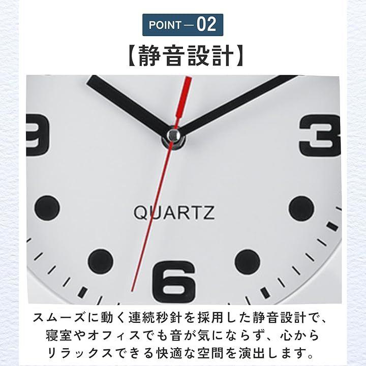 「静音設計」スムーズに動く連続秒針を採用した静音設計で、寝室やオフィスでも音が気にならず、心からリラックスできる快適な空間を演出します。
