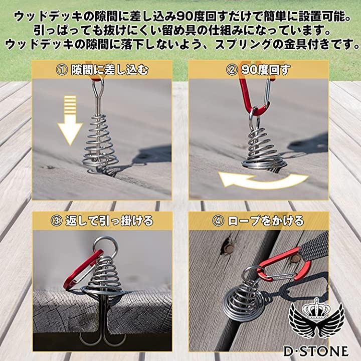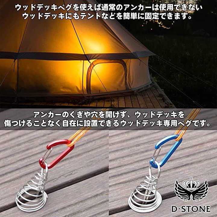 ・ウッドデッキペグを使えば通常のアンカーは使用できないウッドデッキにもテントなどを簡単に固定できます。
