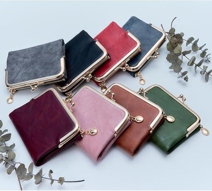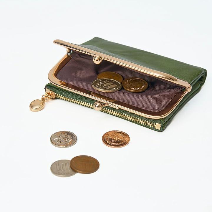 「飽きのこないデザイン」上品なくすみ系の大人カラーが魅力のコンパクトな二つ折り本革がま口財布。