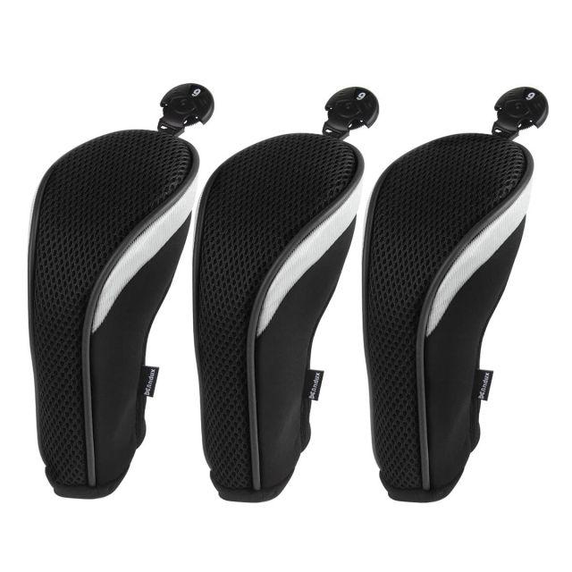 カラー:ブラック/シルバー◆商品名:Anduxゴルフハイブリッドクラブヘッドカバー交換可能な番号タグ付き3個セット(シルバー)