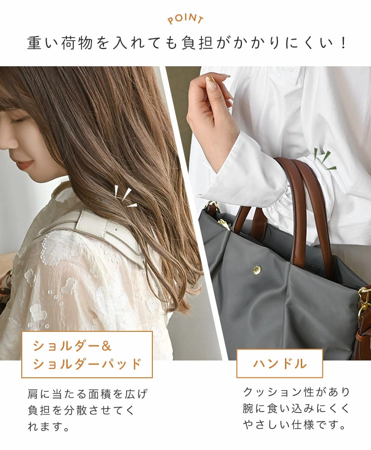 【SABLE 10ポケット2wayトート】SABLE(サブレ)シリーズの10ポケット2wayトートバッグ。軽くてやわらかなナイロン生地とナチュラルカラーの合皮を使用した、おしゃれで落ち着いたデザイン。両面はっ水仕様で雨の日も安心です。広めのマチが付いた18Lの大容量で、通勤・通学のデイリーユースから1泊旅行、マザーズバッグにもぴったり◎取り外し可能なショルダーベルト付きで肩掛けや斜めがけもできるので、荷物が多い日でもスタイルを変えて快適に持ち歩けます。