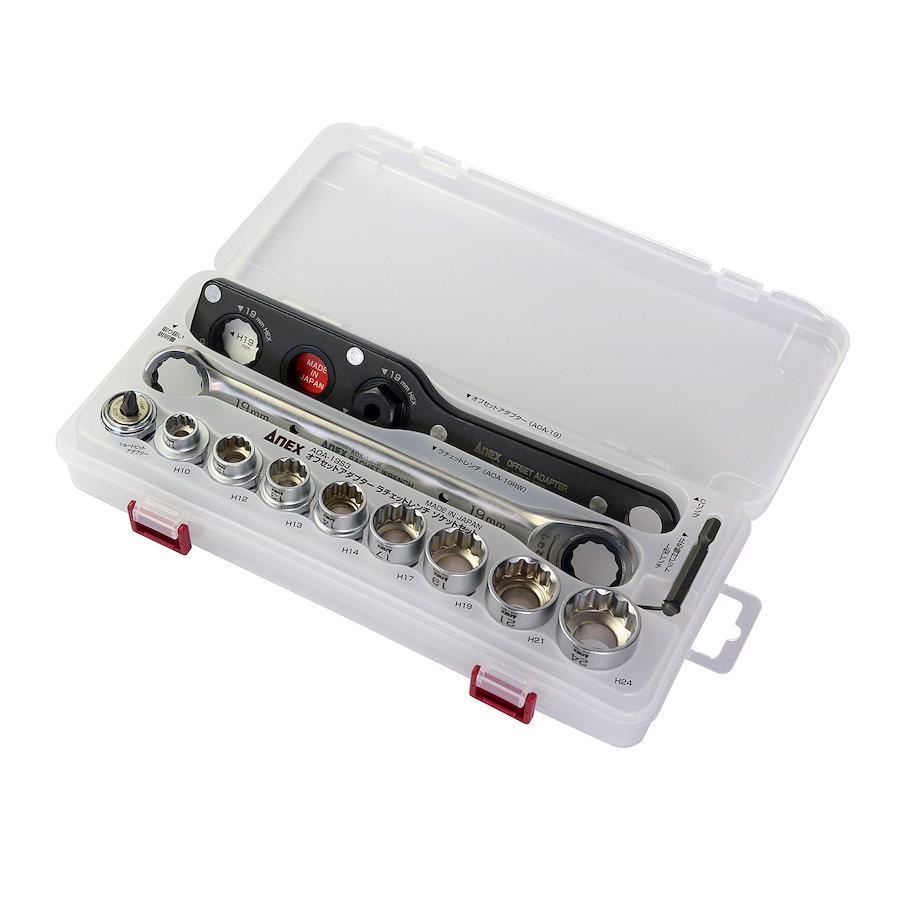 3営業日以内に発送≪新品未開封品≫:アネックス(ANEX) オフセットアダプター19 対辺19mm ラチェットレンチ ケース付 マルチセット AOA-19S3