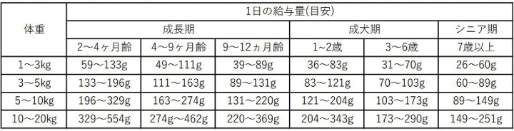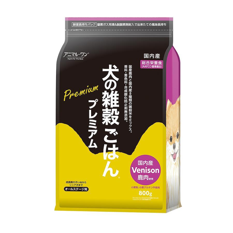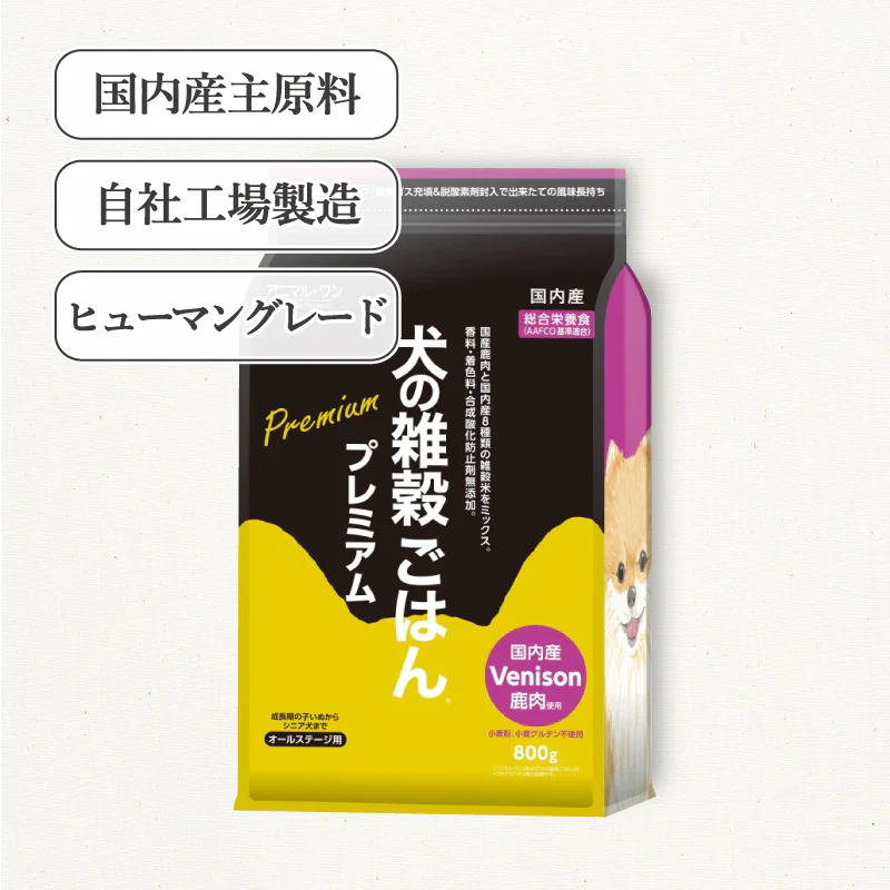 内容量:800g × 3個入り (重量2400g) ワンパック――――――――――――――――――国産鹿肉と国内産 8 種類の雑穀米をミックス。子犬からシニアまで与えられる栄養バランス――――――――――――――――――<対象ライフステージ>成長期の子犬からシニア犬まで(オールステージ用)――――――――――――――――――<原材料>鹿肉、大麦、玄米、鰹節、大麦ぬか、ビール酵母、米油、卵黄粉末、黒米、赤米、発酵調味液、はと麦、あわ、きび、ひえ、大根葉、昆布、ごぼう、にんじん、キャベツ、セレン酵母、白菜、高菜、パセリ、青じそ、L-トレオニン、ミネラル類(リン酸三カルシウム、貝殻未焼成カルシウム、塩化ナトリウム、塩化カリウム、グルコン酸亜鉛、ピロリン酸第二鉄、グルコン酸銅)ビタミン類(ビタミンA、ビタミンD、ビタミンE、ビタミンB?、ビタミンB??、パントテン酸カルシウム)、酸化防止剤(ローズマリー抽出物、ミックストコフェロール)――――――――――――――――――<栄養成分>たんぱく質|20.8%以上脂質|11.0%以上粗繊維|1.3%以下灰分|6.4%以下水分|10.0%以下代謝エネルギー|359kcal/100gカルシウム|1.37% (乾物)リン|1.07% (乾物)ナトリウム|0.32% (乾物)マグネシウム|0.12% (乾物)――――――――――――――――――<給与方法>下記1日あたりの給与量目安を参考に、体質や体重、運動量、便の状態などを観察しながら適宜量を加減し、1日2~4回に分けて与えてください。一日あたりの給与量目安(単位:g)ライフステージ|成長期|成犬期(ライフステージ別)月齢|成犬時体重の 50%まで目安/2-4ヶ月齢|成犬時体重の 50-80%まで|目安/4-9ヶ月齢|成犬時体重の 80-100%まで|目安/9-12ヶ月齢|1~2歳|3~6歳|7歳以上体重(kg)1.0|59|49|39|36|31|26体重(kg)2.0|98|82|66|61|52|45体重(kg)3.0|133|111|89|83|70|60体重(kg)4.0|166|138|110|103|87|75体重(kg)5.0|196|163|131|121|103|89体重(kg)6.0|225|187|150|139|118|102体重(kg)7.0|252|210|168|156|132|114体重(kg)8.0|279|232|186|172|146|126体重(kg)9.0|304|254|203|188|159|138体重(kg)10.0|329|274|220|204|173|149体重(kg)11.0|354|295|236|219|185|160体重(kg)12.0|378|315|252|234|198|171体重(kg)13.0|401|334|267|248|210|181体重(kg)14.0|424|353|283|262|222|192体重(kg)15.0|446|372|298|276|234|202体重(kg)16.0|468|390|312|290|245|212体重(kg)17.0|490|409|327|304|257|222体重(kg)18.0|512|426|341|317|268|232体重(kg)19.0|533|444|355|330|279|241体重(kg)20.0|554|462|369|343|290|251体重(kg)21.0|574|479|383|356|301|260体重(kg)22.0|595|496|397|368|312|269体重(kg)23.0|615|513|410|381|322|278体重(kg)24.0|635|529|423|393|333|287体重(kg)25.0|655|546|436|405|343|296体重(kg)26.0|674|562|450|417|353|305体重(kg)27.0|694|578|462|429|363|314体重(kg)28.0|713|594|475|441|373|322体重(kg)29.0|732|610|488|453|383|331体重(kg)30.0|751|626|500|465|393|340――――――――――――――――――●適正給与量には個体差があります。体重変化等を観察しながら給与量を加減してください。●特にシニア犬や避妊・去勢後は太りやすい傾向にありますので、愛犬のコンディションに合わせて給与量を調整してください。●他のフードからの切り替えは、従来のフードに本商品1割くらいを混ぜることからはじめ、徐々に本商品の量を増やしてください。完全に切り替えるまで2週間ほどかけることをおすすめします。●新鮮な水をいつでも飲めるようにしてください。