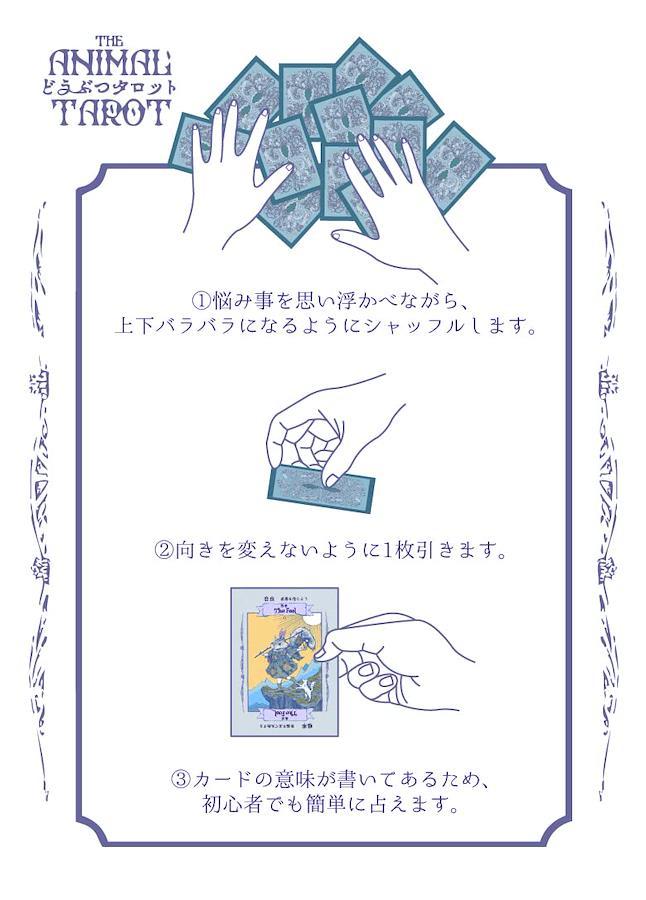 This is a tarot card for super beginners with an explanation on the card itself Even if you don't know at all, you can just shuffle and pull one sheet to create what you want to occupy Same size as a card game for beginners to shuffle easily. 63*88mm This is a tarot card with animal patterns based on weight edition 22 Large Arcana + 1 Instruction Card These tarot cards are created with the U.S. Games Systems permission to sell them Under the guidance of intellectual property experts, the text on this tarot card is confirmed and recorded by a notary person