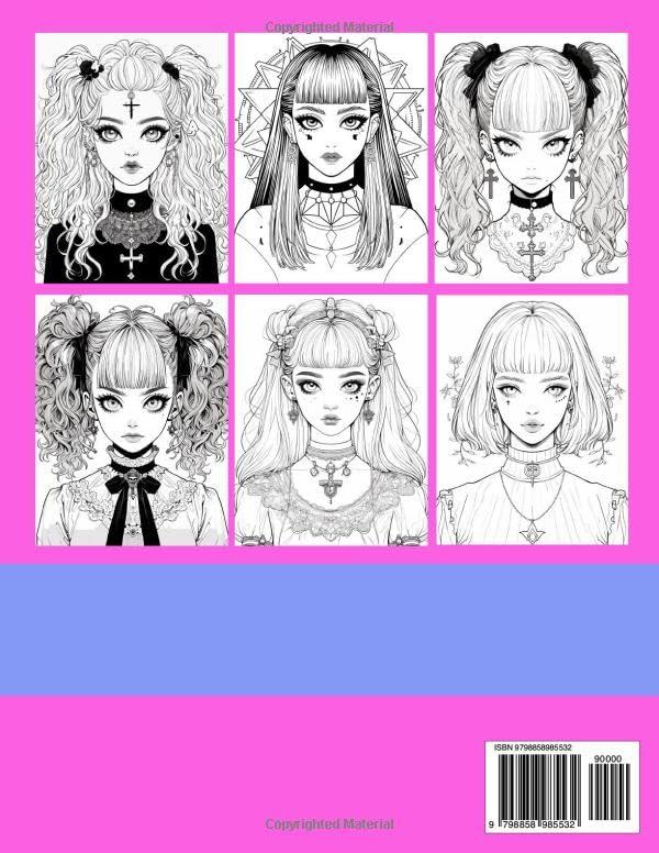 Anime Goth Girl Coloring Book: Relaxing Horror Themes for Adults and Teens: 8.5 x 11 Large Print | Stress Relief & Creat
