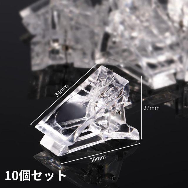 10個セット:ジェルネイルを硬化させる際、ネイルチップを固定したり、専用ジェルの形を整える時に役立つネイル長さだしクリップです。クリップを使用することで、爪の形が安定し、ネイルアートがきれいに仕上がります