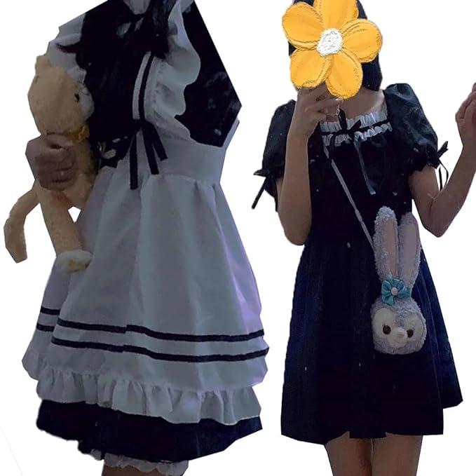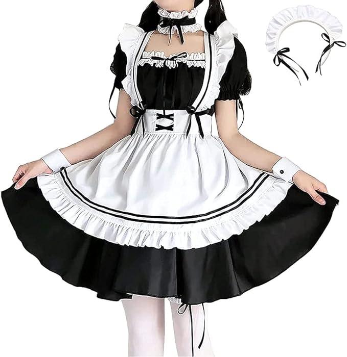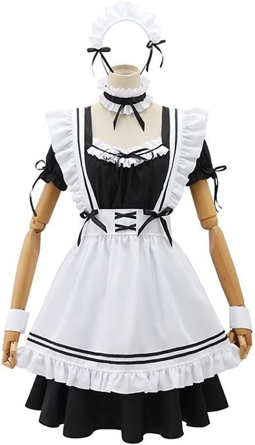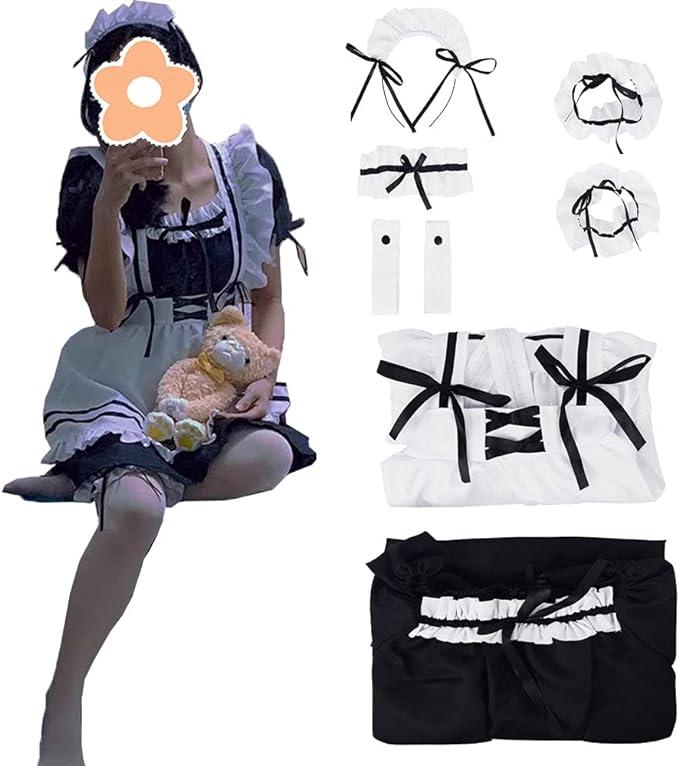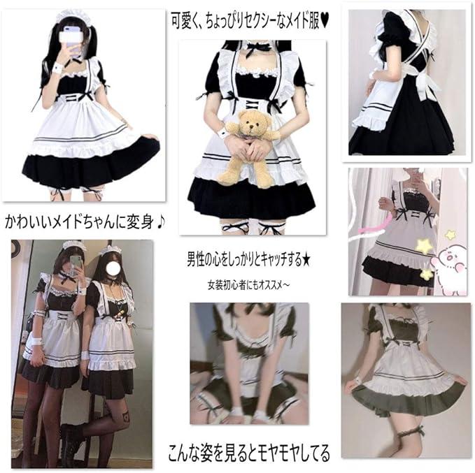 ■商品名ANONIE メイド服 コスプレ仮装 初心者 かわいい コスチューム ホワイト+ブラック 豪華セット 5XL