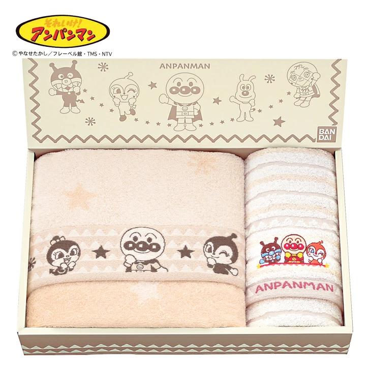 国民的人気キャラクター「アンパンマン」のタオルギフト。人気キャラクターが勢ぞろいの楽しいデザインのタオルになっております。ナチュラルな色合いで、落ち着いた印象の為、親子でご使用いただけます。