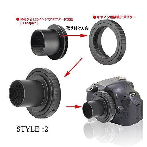 すべてのCanon SLR / DSLRモデルに適合。すべての標準的な1.25インチの天体望遠鏡に適合し、天体望遠鏡フィルタ(チューブ内の糸)を受け入れます。DSLRカメラとアイピース投影撮影による直接(プライムフォーカス)撮影用のカメラアダプターです。高品位合金製。 全金属構造および陽極酸化アルミニウムプロセスの外面。写真を撮るために天文学を使用する人のための不可欠な付属品。