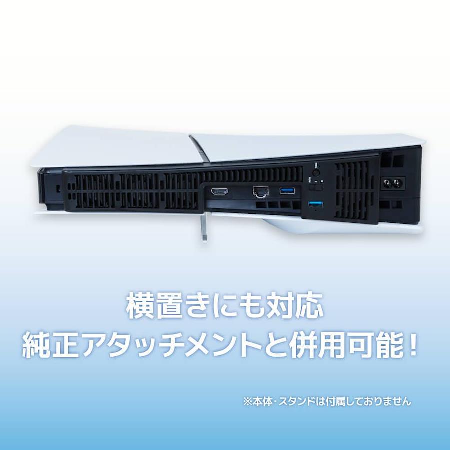 ◆縦置き・横置き両対応!新型PS5本体の背面に差すだけのカンタン取り付けで縦置き・横置きに対応しております。