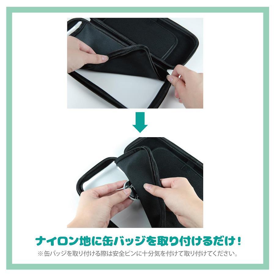 Switchポーチを自分好みにアレンジ可能!上面のファスナーを開けることで、ナイロン地部分に缶バッチやグッズを取り付け・配置しオリジナルのポーチを作成できます。また、缶バッチのピン部分は本製品のナイロン地部分に直接、取り付けることが可能です。