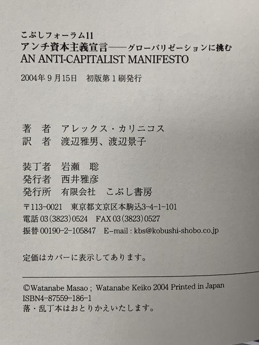 Anti-Capitalist Manifesto: Challenging Globalization (Kobushi Forum 11) Kobushi Shobo Alex Kallinikos