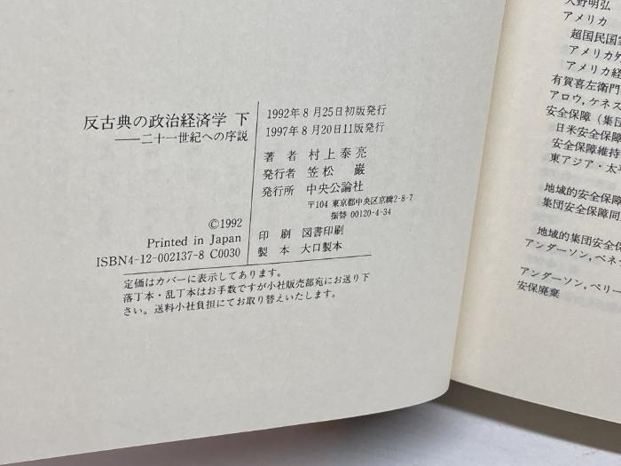 商品名:反古典の政治経済学 上下巻揃 村上泰亮 中央公論社