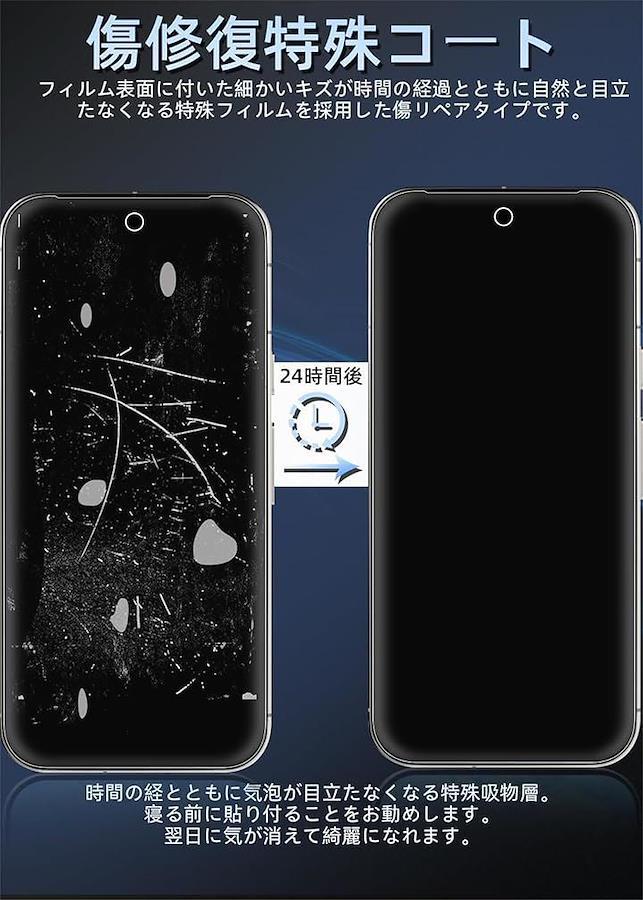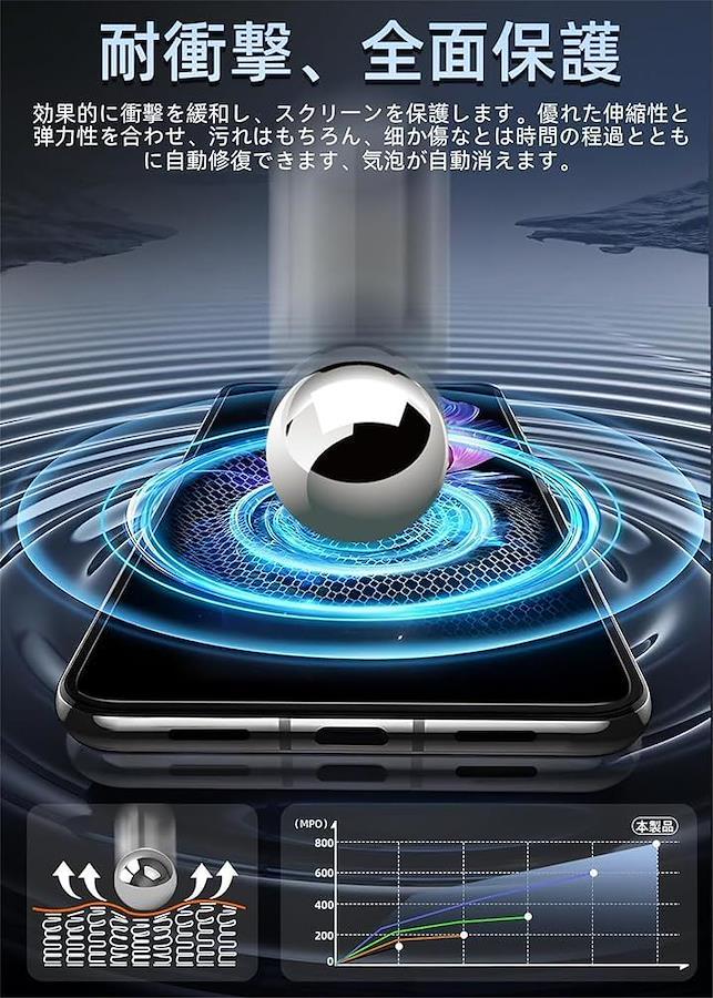 「柔軟な素材&バブルフリー」ご注意:保護フィルムは強化ガラスではなく、高品質の熱可塑性ポリウレタン(TPU)、素材特有の弾力性と柔軟性により、ガラスフィルムでは貼られないエッジ部分までしっかり保護できます。