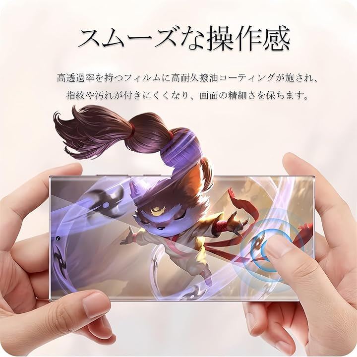 「快適な指滑り・防汚性能満点」保護フィルムの表面に特殊なコーティングを施すことで、水や油の汚れ、指紋や汚れを画面から効果的に分離し、付着しにくく、きれいな状態を保つことができます。