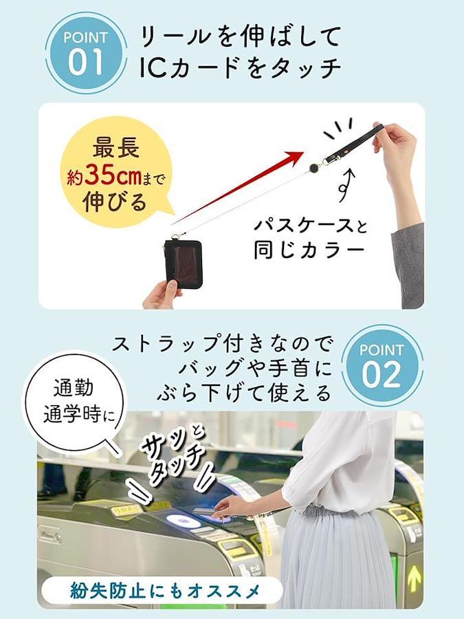 35cmまで伸びるリールとストラップで、必要な時にサッと取り出せる使いやすさを実現。