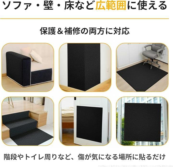 「傷の補修にも役立つ」 新しい家具の保護だけでなく、猫のひっかきで傷ついたソファや布地の補修シートとしても活躍。