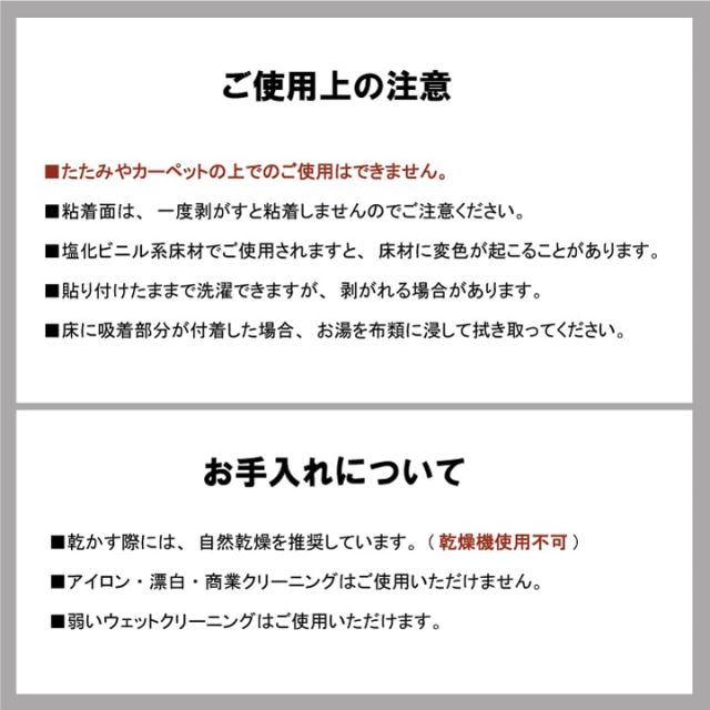 "マットなどの商品の裏に付けて、滑り止めとしてご使用ください。洗濯機の使用も可能なため、商品から剥がす必要もございません。