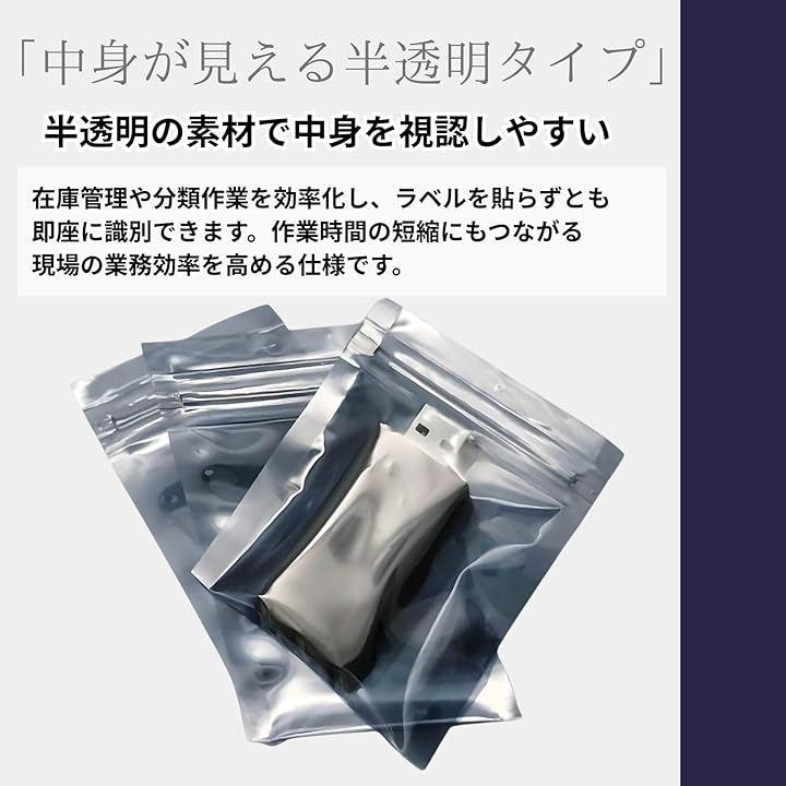 「中身が見える半透明タイプ」 半透明の素材で中身を視認しやすく、袋を開けずに内容物を確認可能。
