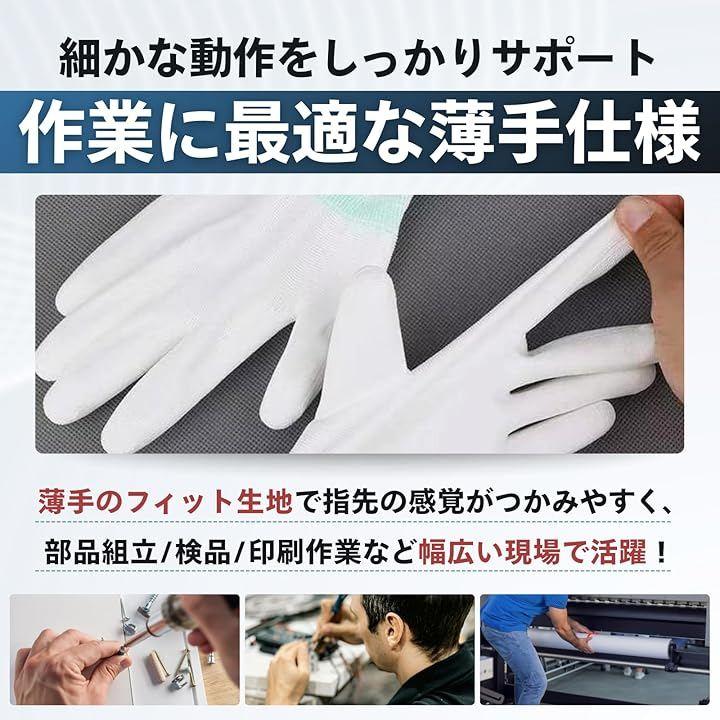 帯電防止・すべり止め効果があり、また軍手より生地も薄手ですので、指先を使う細かい作業に適した手袋です。