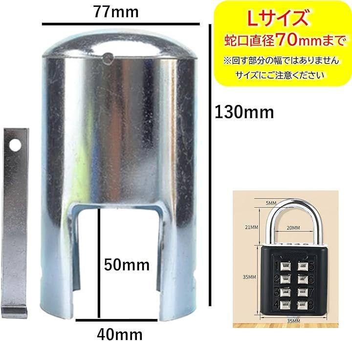 Lサイズ(色:シルバー) 蛇口カバー外寸:約 130mm x 77mm 蛇口の入り口部分(内寸):約 50mm x 40mm 対応する蛇口ノブの最大直径:70mm カラー:シルバー 特徴:一般的な立水栓ノブや、Mサイズで対応できない大きめの蛇口に対応します。