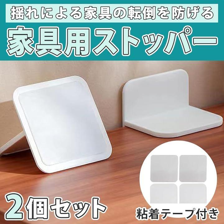 「セット内容」家具転倒防止ストッパーx2点 ジェルマットx4枚(大小各2枚) 「サイズ(約)」70mmx70mmx55mm 「カラー」ホワイト