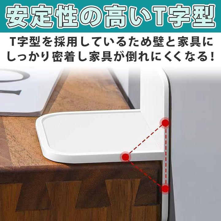 T字型のストッパーは家具と壁面にピタッと密着するだけでなく、目立ちにくいシンプルなデザインによりお部屋の景観を崩しません。