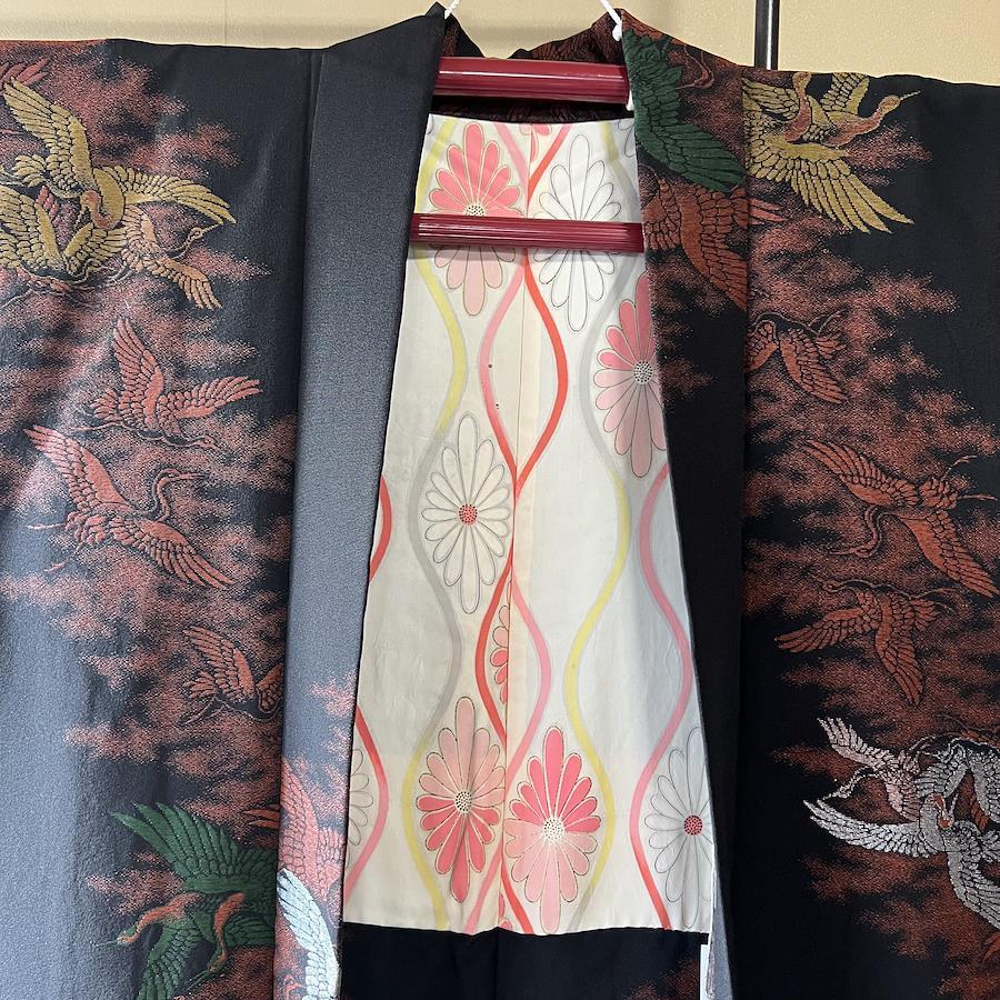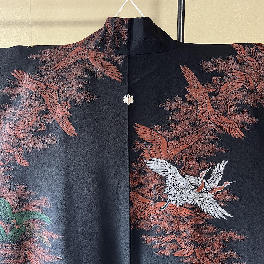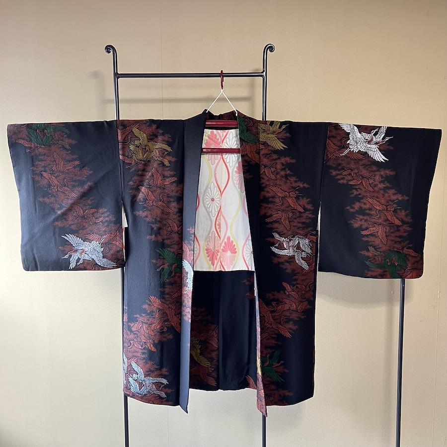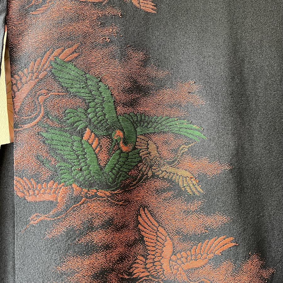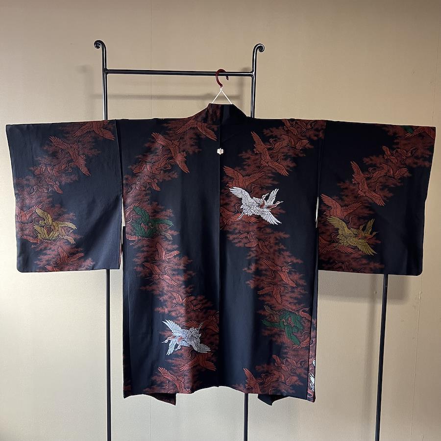 アンティークの羽織は50年以上前に制作されたもので、経年変化によるシミが少しあります。アップの画像は織り柄の部分です。アンティークの商品であることを了承の上ご購入ください。