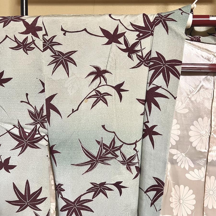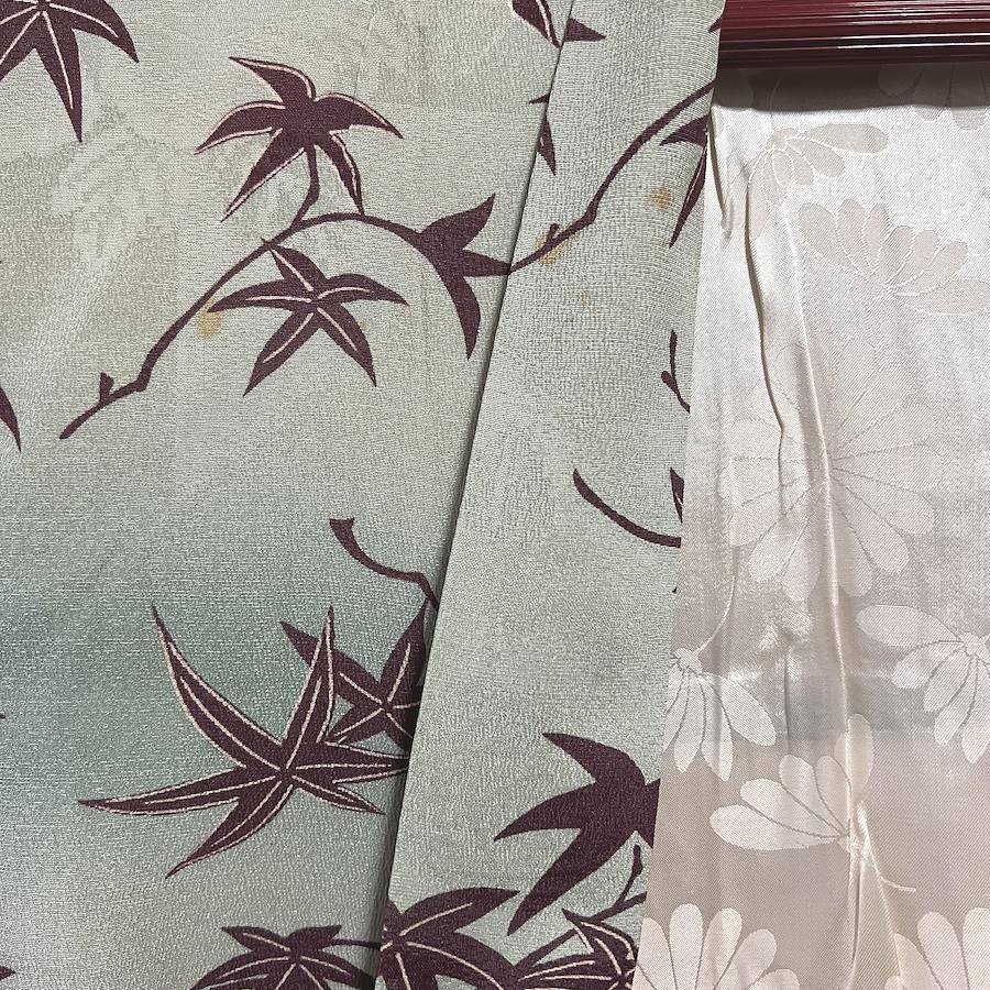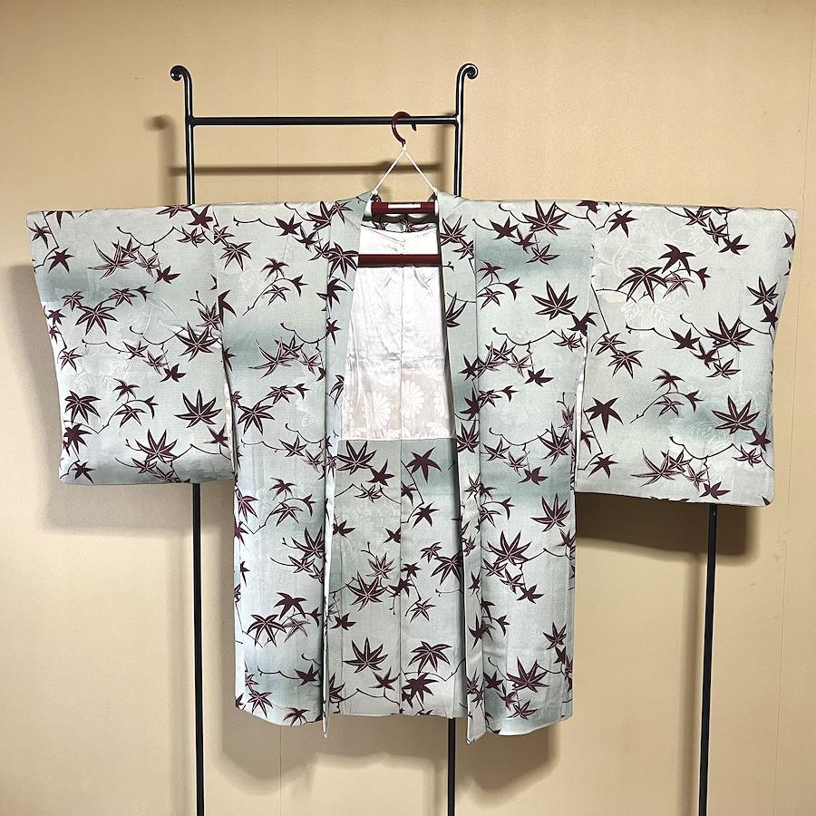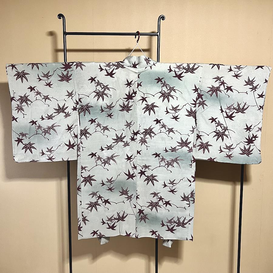 アンティークの羽織は50年以上前に制作されたもので、経年変化によるシミがあります。アップの画像はシミがある部分です。ご購入前に画像をご確認頂き、了承の上ご購入ください。