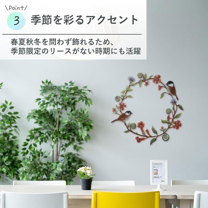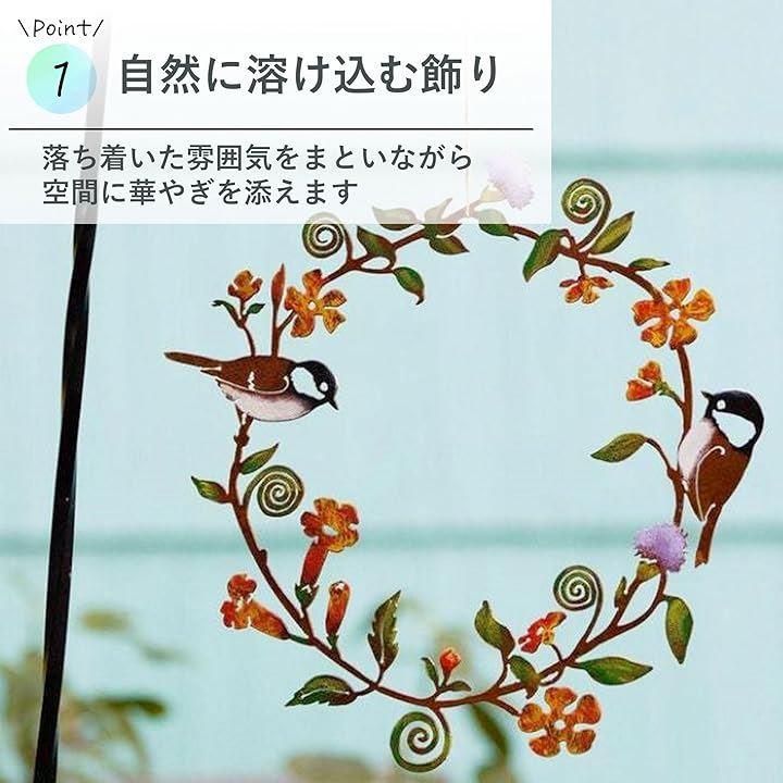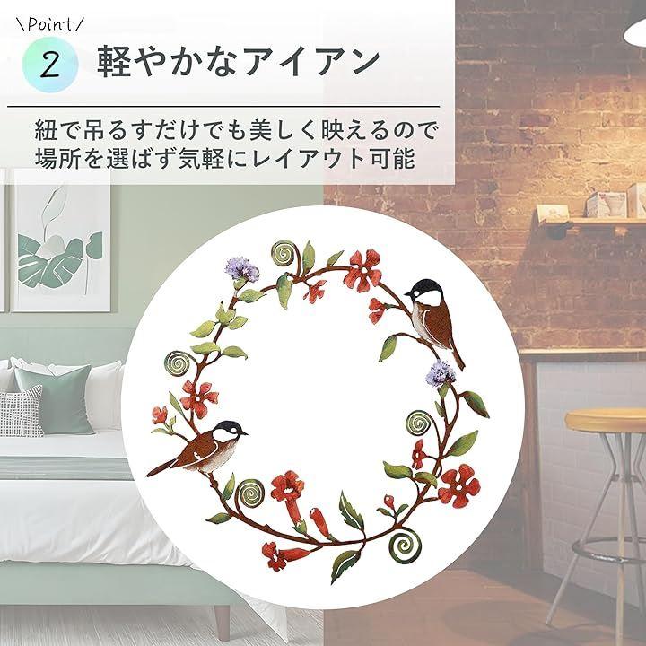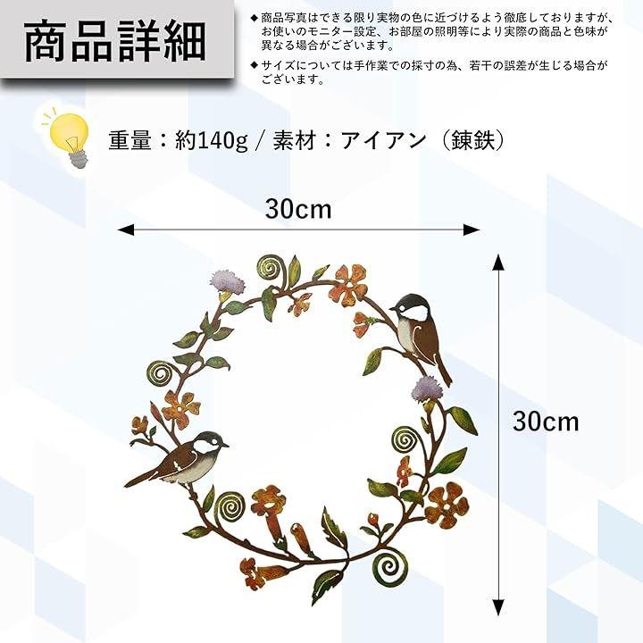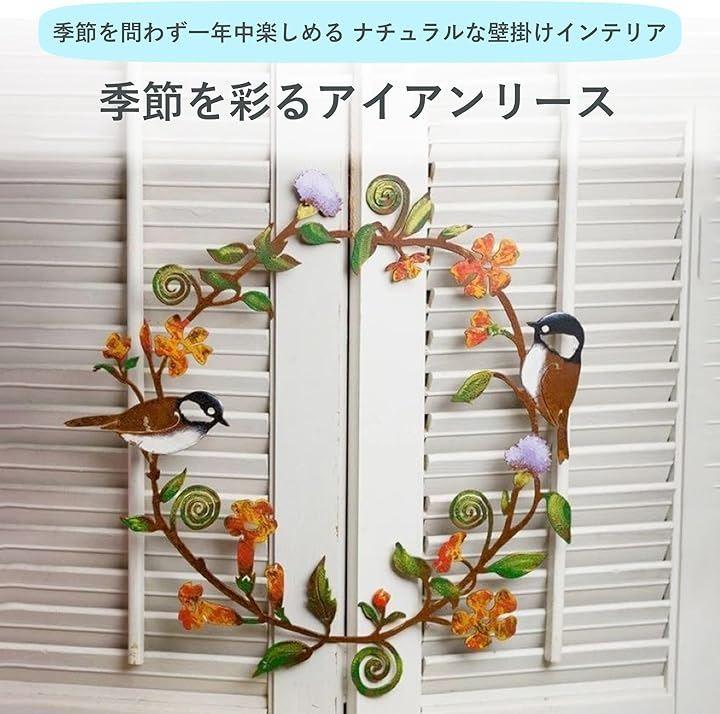 「自然に溶け込む飾り」アイアン素材に小鳥と草花の透かし模様を施したアンティーク調リース。