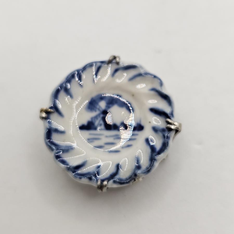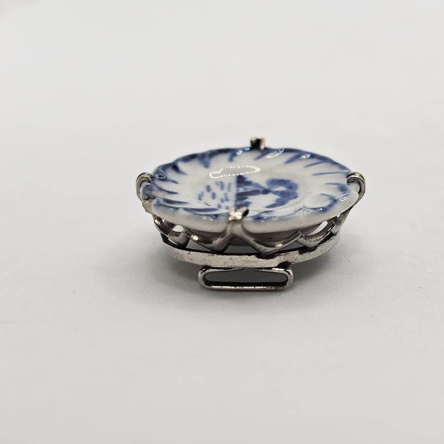 手のひらに乗るサイズのミニチュアの飾り皿をモチーフにした、大変ユニークな帯留めです。