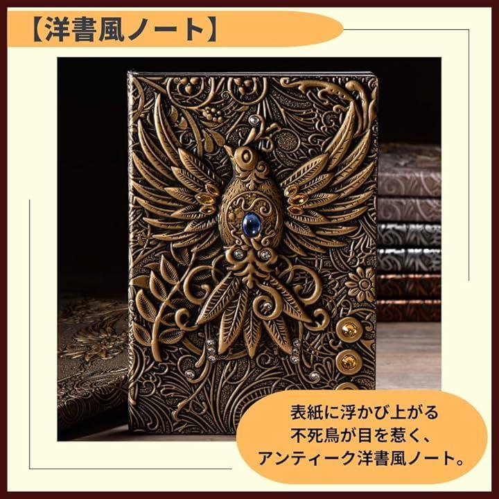 「洋書風ノート」表紙に浮かび上がる不死鳥が目を惹く、アンティーク洋書風ノート。