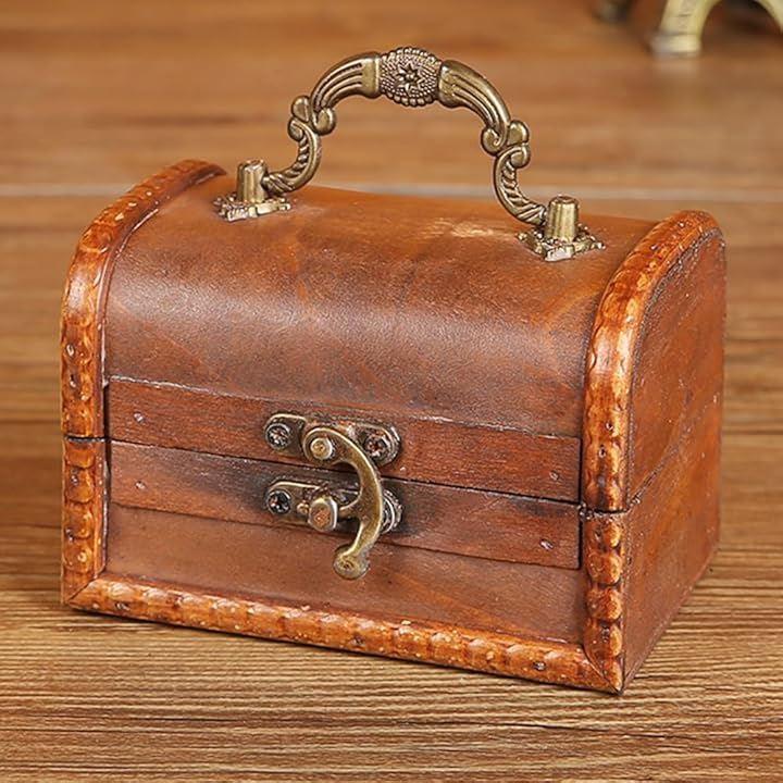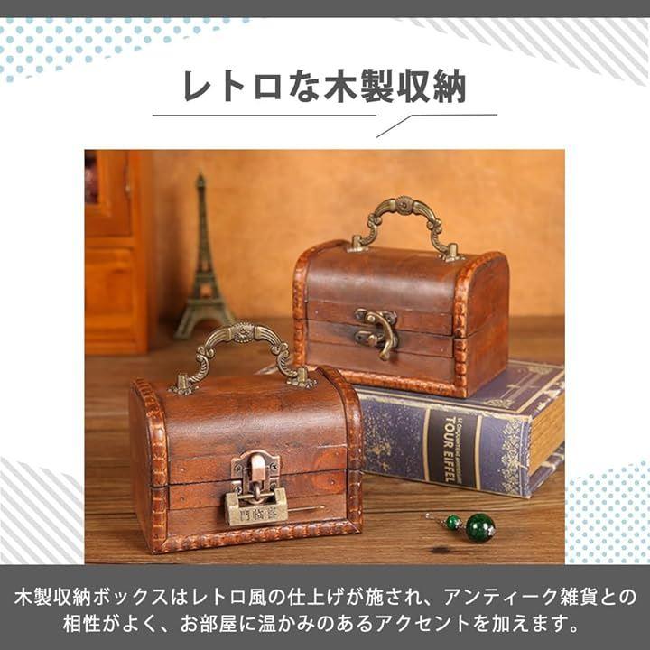 宝箱を思わせるデザインが特徴で、木製ならではの温もりとレトロ風の雰囲気が魅力です。