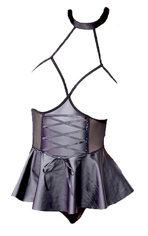Aokeea Bondage SM Cosplay High-Leg Leotard Open Bust Seductive Sexy One-Piece Skirt Bodysuit Extreme Devil