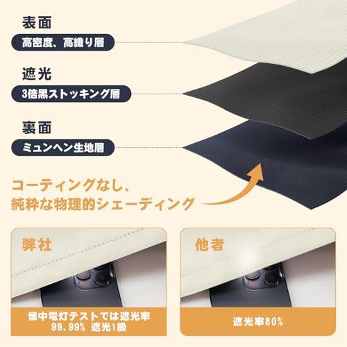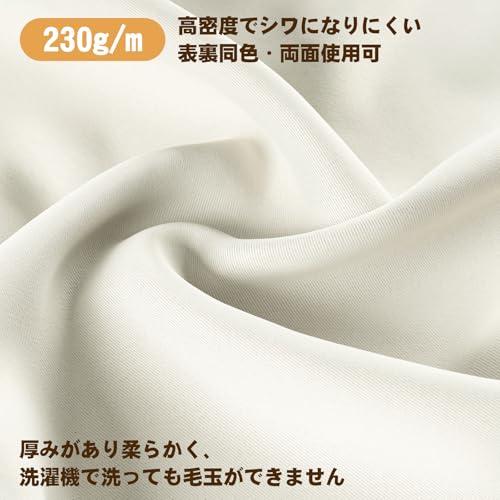 【生地】遮光1級生地(遮光率99.99%以上)を使用,外からの光をほとんど通さない、夏場の断熱効果、冬場の保温効果が期待できます。 昼間カーテンを閉めたお部屋のなかで相手の顔の表情が分からない程度にまでお部屋を暗くできます。同じ等級であっても、カーテンの明度や色彩によって遮光の度合いが変わります。薄い淡い色は光を通しやすく、濃い暗い色は光を通しにくいです。遮光性を重視される方は濃色をおすすめします。 【三重織り技術】生地は三重構造のテクノロジーの技術利用して黒い系を織り込んでいるから、優れた遮光機能が備えております。きちんと室外からの日差しや紫外線などをしっかり遮られる機能付きの厚地遮光カーテンです。小窓やカラーボックスや車内などの目隠しにピッタリ。 【UVカット】この小窓遮光カーテンを使えば、紫外線をカットすることによってお肌も守るし、家具の日焼けや色褪せ防止にも働きます。また、犬の目は人間よりも紫外線に弱いと言われております。紫外線は犬の皮膚にもダメージを与えるので、浴び過ぎなら犬にとっても大敵です。そのため、UVカット効果で大切なペットを紫外線から守れます。 【柔らかい高密度生地・表裏同色】高密度と柔らかい生地で使用、表裏同色両面を使用できます。厚みがあり、柔らかく、洗濯機で洗っても毛玉ができません。お手入れしやすいのでいつも清潔に使用できます。カーテンの重みで洗濯ジワも伸ばすことができので、形態安定としてはとても効果が期待できます。 【取付方法】両端の直径2.0cm以下の突っ張り棒が使用可能です。カラー:アイボリー[遮光1級・厚め] ・ 幅100cm x 丈90cm [1枚入れ] 適応窓サイズ:幅55-95cm *別途対応可能な突っ張り棒をご用意ください。ご注意:同じ等級であっても、カーテンの明度や色彩によって遮光の度合いが変わります。薄い淡い色は光を通しやすく、濃い暗い色は光を通しにくいです。遮光性を重視される方は濃色をおすすめします。
