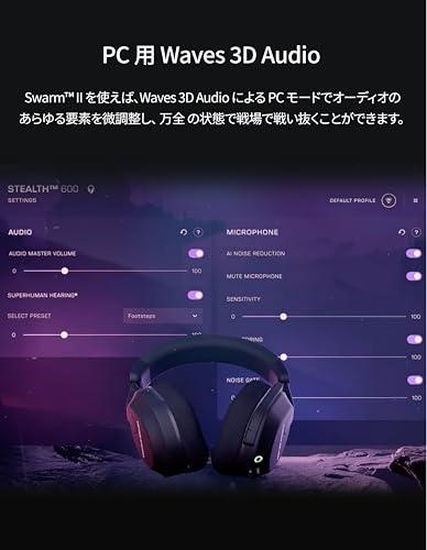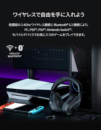 【幅広い対応機種】Xbox Series X|S & Xbox One、PS5 & PS4、Windows PC、Nintendo Switch、Steam Deck、モバイル。どのプラットフォームでもシームレスなゲーム体験を提供し、デバイスを選ばずに高品質なオーディオと快適なチャットが楽しめます。複数のゲーム機を持つ方や、さまざまなデバイスでゲームをプレイする方に最適です。 【クイック接続切替】2.4GHzワイヤレスとBluetooth 5.2のクイック切り替え機能により、低遅延の接続を確保し、ゲーム中の重要な瞬間を逃しません。ワンタッチで接続を切り替え、デバイス間のシームレスなオーディオ体験を可能にします。例えば、ゲーム中にスマートフォンからの着信があっても、簡単に切り替えて対応できます。 【長時間バッテリー】最高クラスの80時間持続するバッテリーと急速充電対応で、長時間のゲームプレイでも安心して使用できます。充電を気にせずにプレイを続けることができ、急速充電機能で短時間での充電も可能です。長時間のゲームセッションでも途中で電池切れになる心配がなく、急なゲームプレイの予定でも安心です。 【高性能マイク】A.I.ノイズリダクション搭載のフリップミュート式単一指向性マイクで、バックグラウンドノイズを低減し、クリアなコミュニケーションを実現。これにより、チームメンバーとの指示やチャットが明瞭に伝わります。ミュート機能も簡単に操作でき、必要なときに即座にミュート可能です。 【優れた音質】50mm NanoclearドライバーとWaves 3D Audioにより、ゲーム内の微細なサウンドまで正確に再現し、没入感のある音響体験を提供します。高品質なドライバーがクリアで力強いサウンドを生み出し、Waves 3D Audioが立体的な音響空間を実現。敵の足音や環境音などの細かな音も鮮明に聞き取れます。