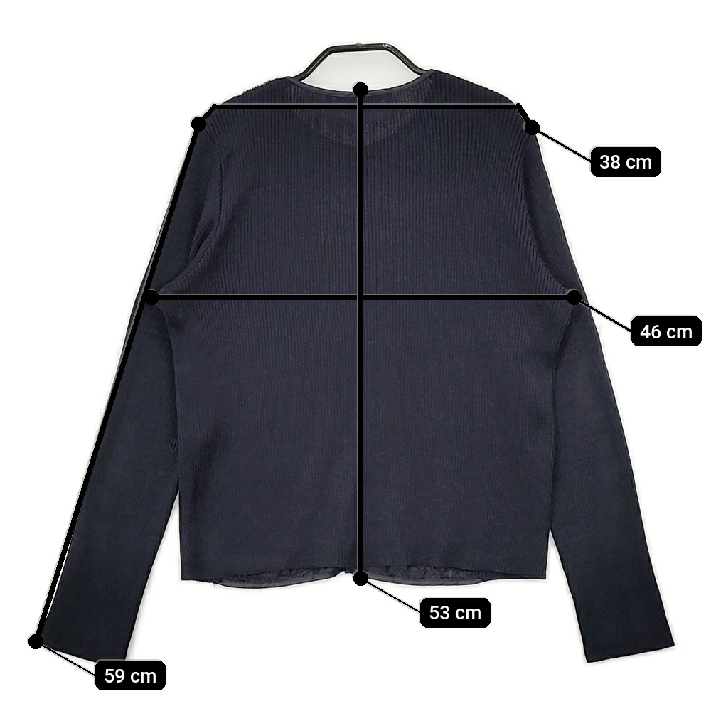 | 実寸サイズ | 肩幅:約38cm 着丈:約53cm 身幅:約46cm 袖丈:約59cm ※採寸画像がある商品はハンガーに吊るした状態での計測のため、平置きでの採寸とは差が生じる場合がございます。平置きでの実寸サイズをご希望の場合は、ご購入前に必ずご質問ください。 ※記載以外のサイズが合わないことを理由とした返品はできませんので、 記載部分以外で実寸サイズの気になる箇所があれば必ず購入前にご質問ください。 |