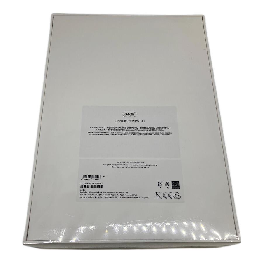 ■商品状態程度S:未使用のお品物こちらの商品は未使用品になりますが、店頭にて展示販売を行っている為、記載に無い細かなキズ、ヨゴレなどが見受けられる場合がございます。■商品説明ブランド :Appleアイテム名:iPad(第9世代)型番 :MK2L3J/Aストレージ:64GB備考:未開封品・Wi-Fiモデル※内部アプリの動作、及び通信契約サービスに関連する保証は致しかねますためあらかじめご了承くださいませ。またバッテリーに関しての持続時間については中古品という特性上保証が難しくなっております。合わせてご了承くださいませ。■付属品本体のみ■その他必ず、商品注文される前に店舗情報に記載している注意事項をご確認ください。