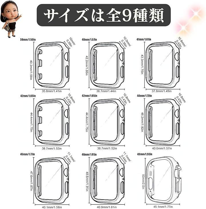 サイズは9種類:38/40/41/42(シリーズ1.2.3)/42(シリーズ10.11)/44/45/46/49mm。